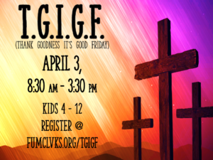 We will answer questins like “What is salvation? What is redemption? What’s so good about Good Friday?” This day will be filled with stories, art, science & games.